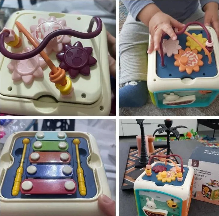 • Ce jouet cube a 14 fonctionnalités interactives qui développent la motricité fine