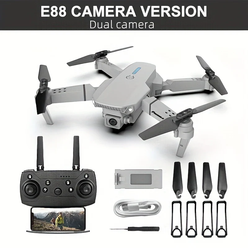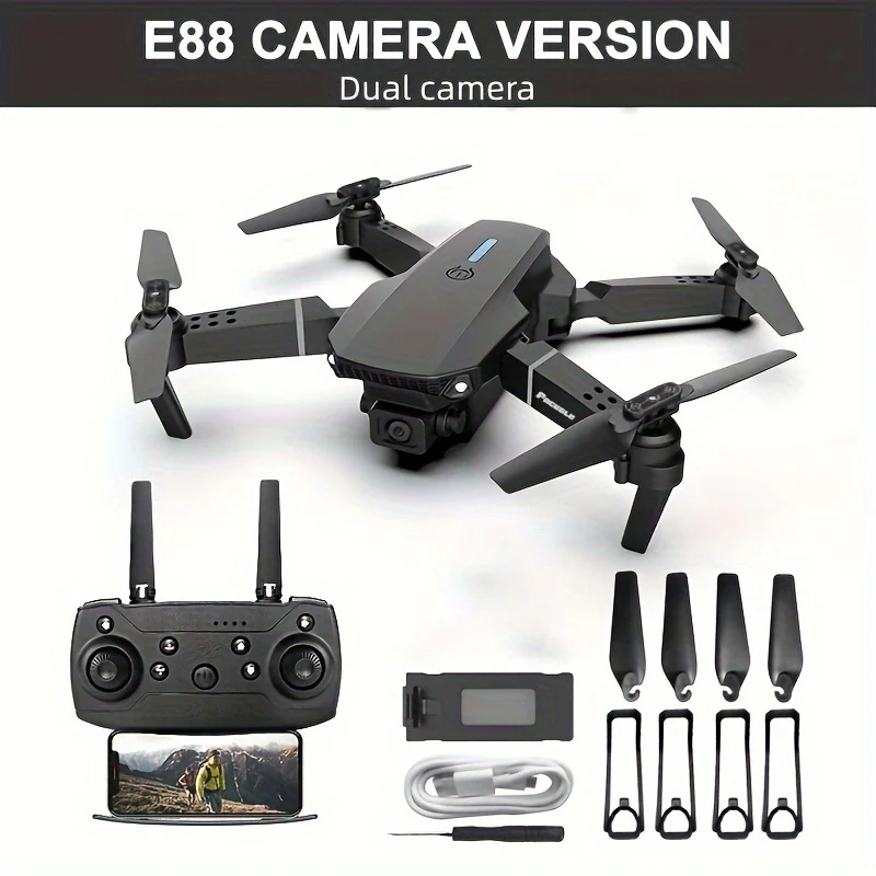 ABSLZER Drone E88, quadrirotor 480P avec deux caméras, facile à utiliser, conception pliable, connectivité WiFi, adapté aux débutants