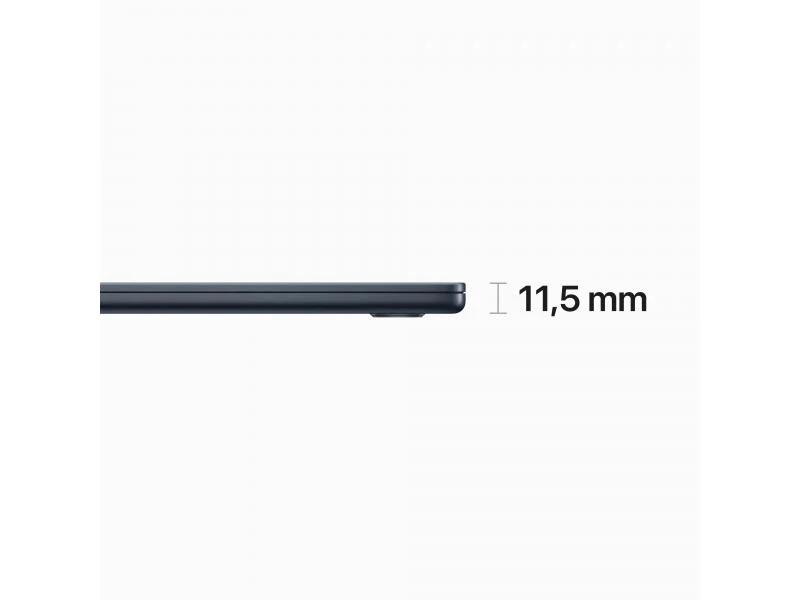 Apple MacBook Air . Type de produit: Ordinateur portable, Format: Clapet. Famille de processeur: Apple M, Modèle de processeur: M2. Taille de l’écran: 38,9 cm (15.3″), Résolution de l’écran: 2880 x 1864 pixels. Mémoire interne: 8 Go. Capacité totale de stockage: 256 Go, Supports de stockage: SSD. Modèle d’adaptateur graphique inclus: Apple GPU. Système d’exploitation installé: macOS Ventura. Couleur du produit: Midnight. Poids: 1,51 kg