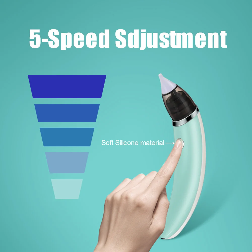- 👶🏻 Fficient Efficace et facile à utiliser Bouton de Fonctionnement : Appuyez longtemps sur le bouton pour arrêter l’Aspirateur Nasal.