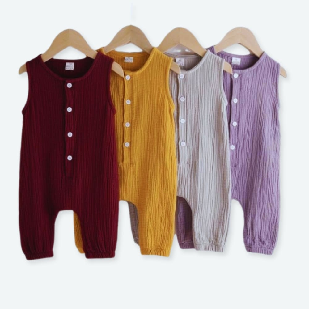 La barboteuse combinaison en mousseline pour bébé est un vêtement très confortable et très léger, idéal pour les journées chaudes. La mousseline est une matière douce et respirante, parfaite pour la peau sensible de bébé. Les combinaisons sont faciles à enfiler et à retirer, grâce à leurs fermetures à boutons sur le devant. Elles sont disponibles dans une large gamme de couleurs vives, parfaites pour les bébés et les tout-petits.