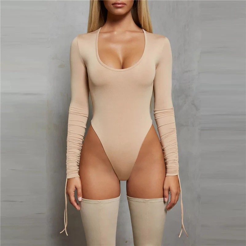 Body sexy à manches longues, couleur unie | micro élasticité extensible | détails sur le cordon de serrage | lavable en machine | parfait pour le printemps et l’automne