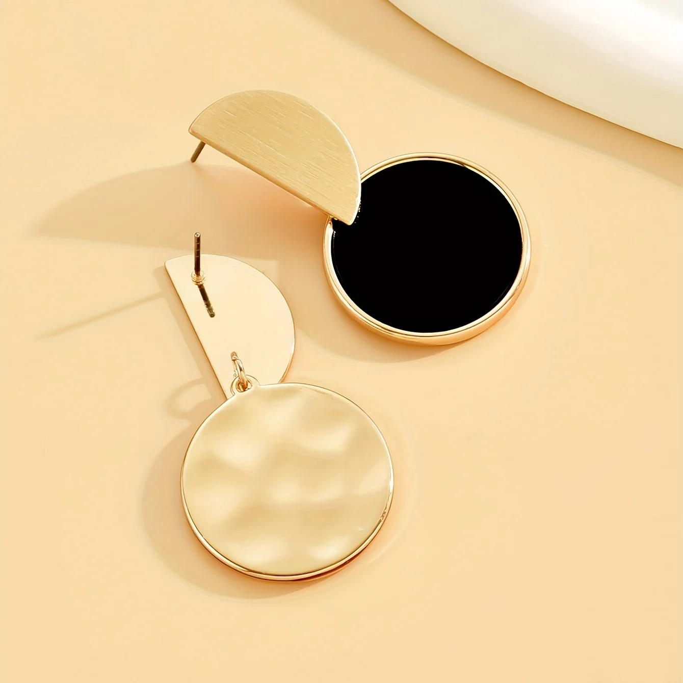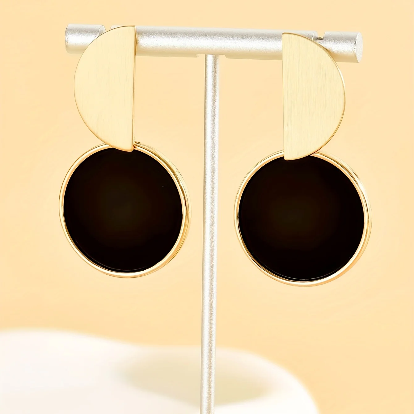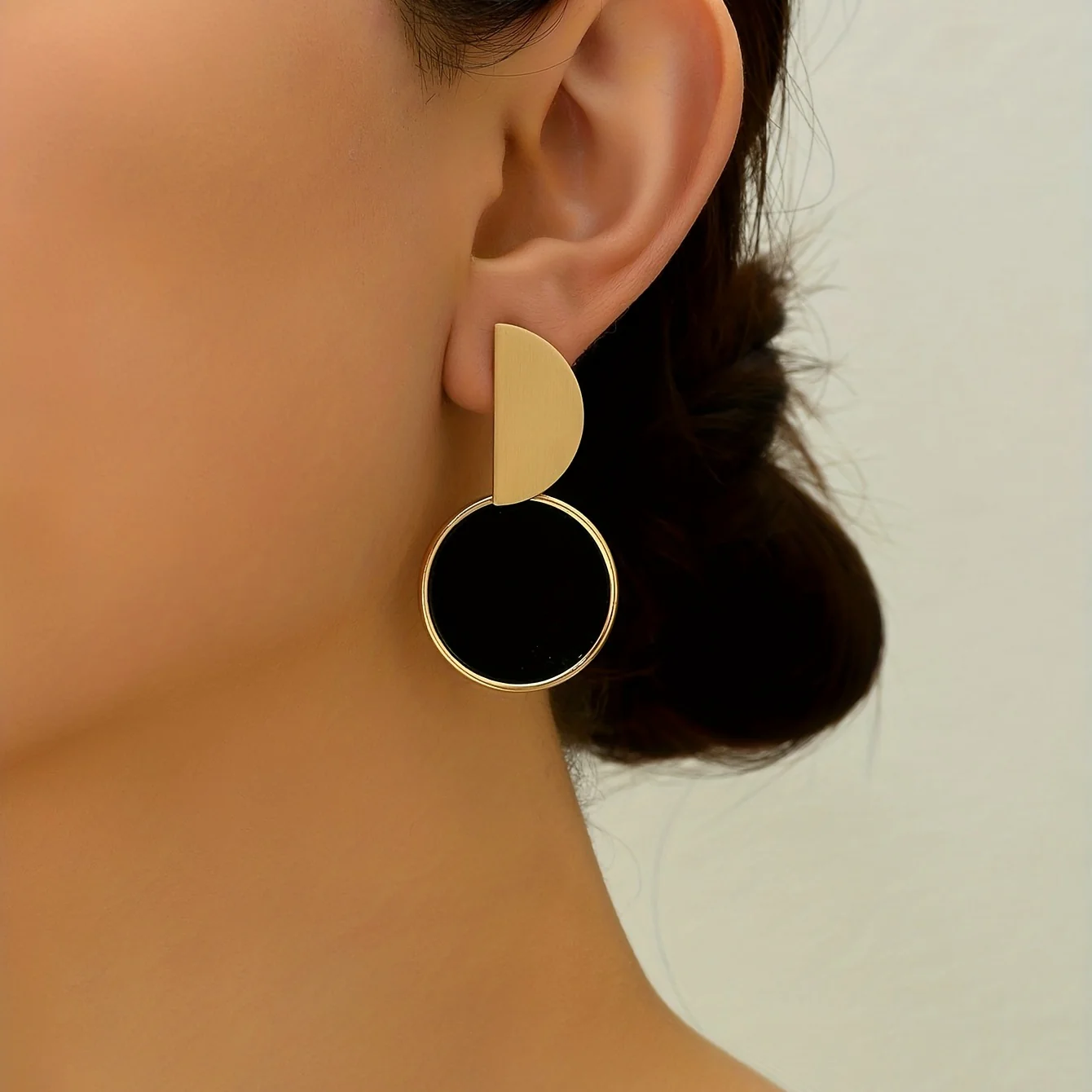 Boucles d’oreilles rondes en alliage de Zinc, épissure Simple dorée, couleur contrastée noire, bijoux à usage quotidien