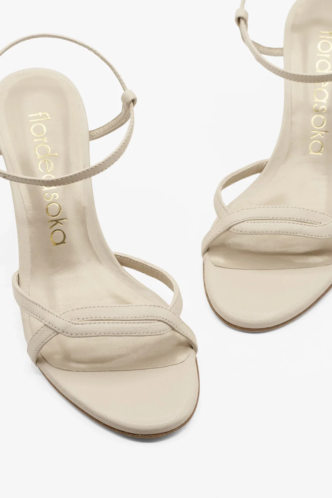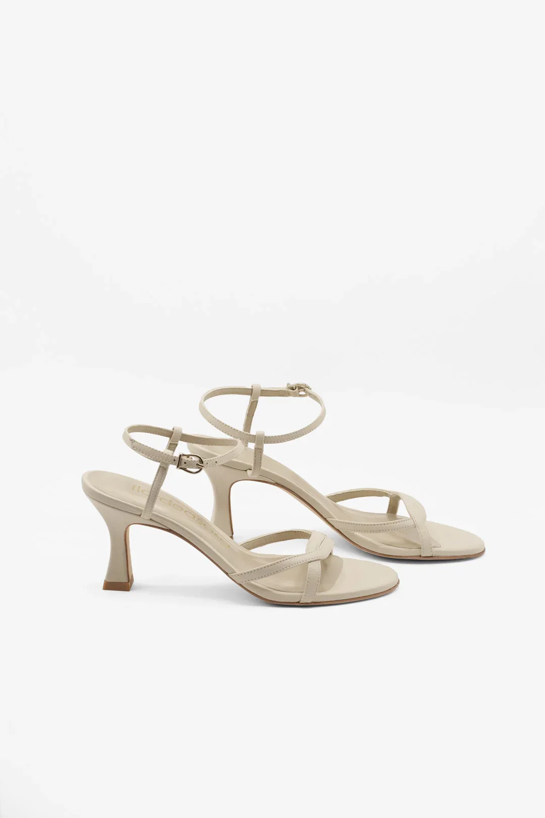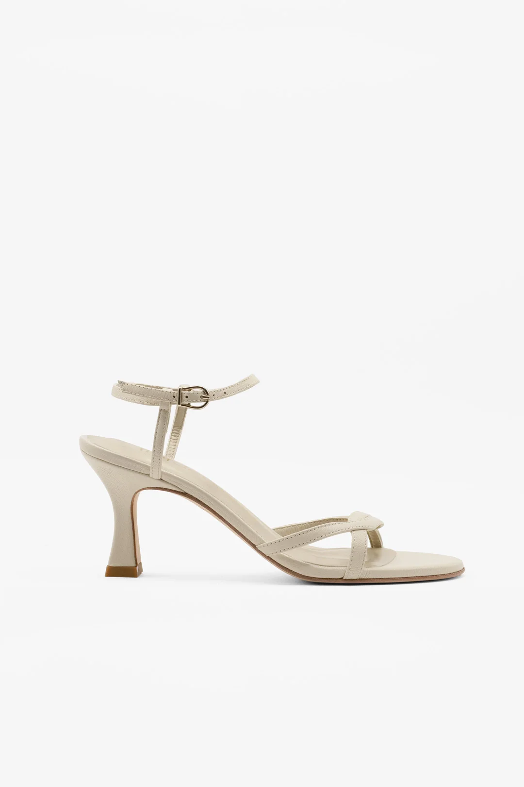 Nuestras sandalias blancas por excelencia en version 7 cm. Con dos tiras cruzadas de piel en color blanco algodón. Es un zapato con presencia discreta, que acompaña con armonía a cualquier vestido de novia.
