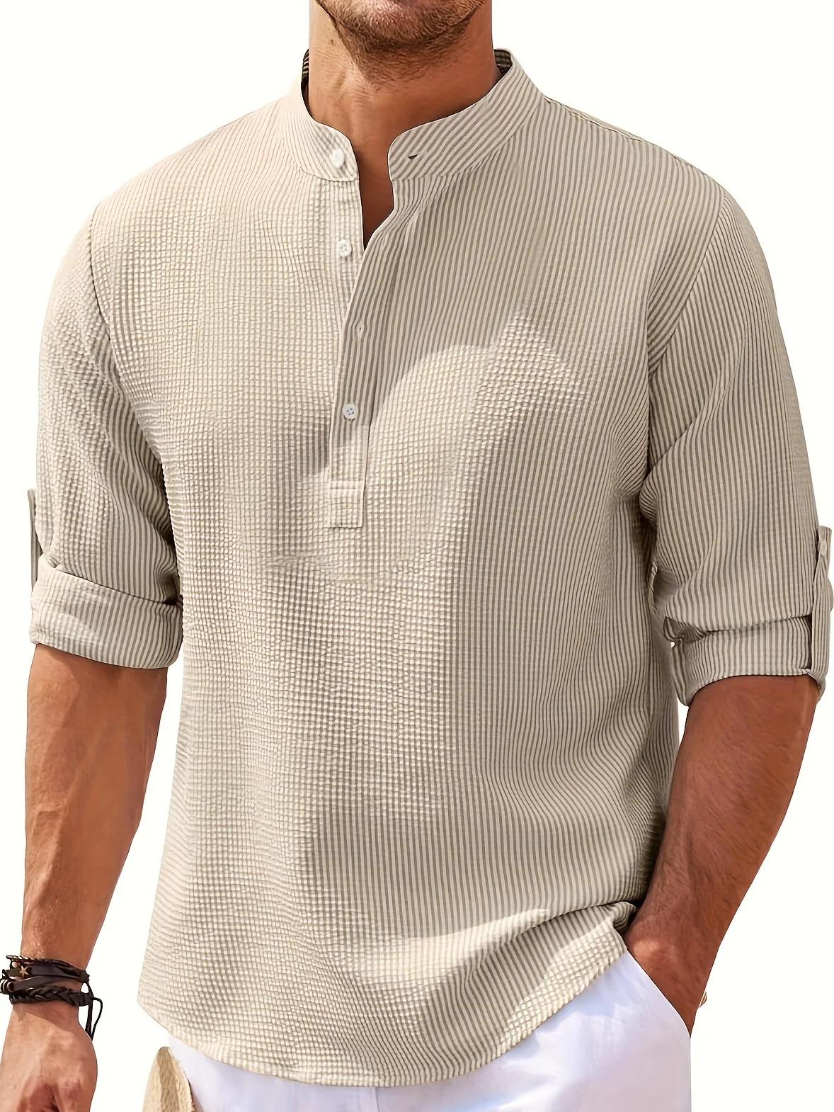 Chemise à revers à manches longues, texture gaufrée, décontractée, confortable