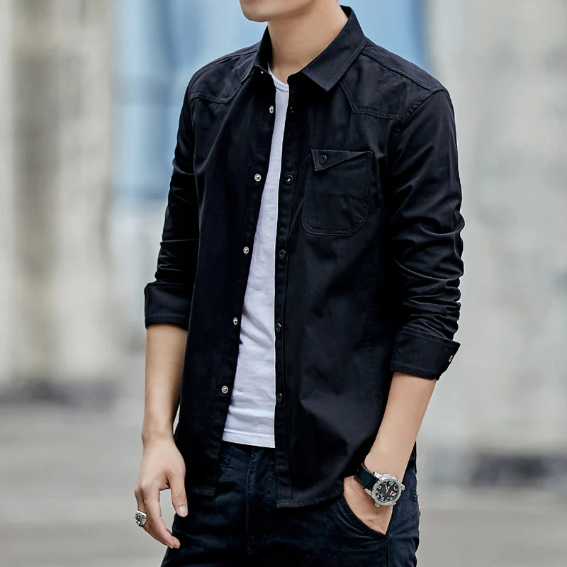 Chemise Homme Coton Manches Longues Chemises Vêtements de Travail