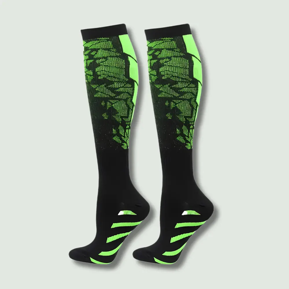 Ces chaussettes hautes de compression et soutien sont idéales pour les ouvriers du BTP, logisticiens, soignants, serveurs et artisans, apportant un confort tout au long de la journée.