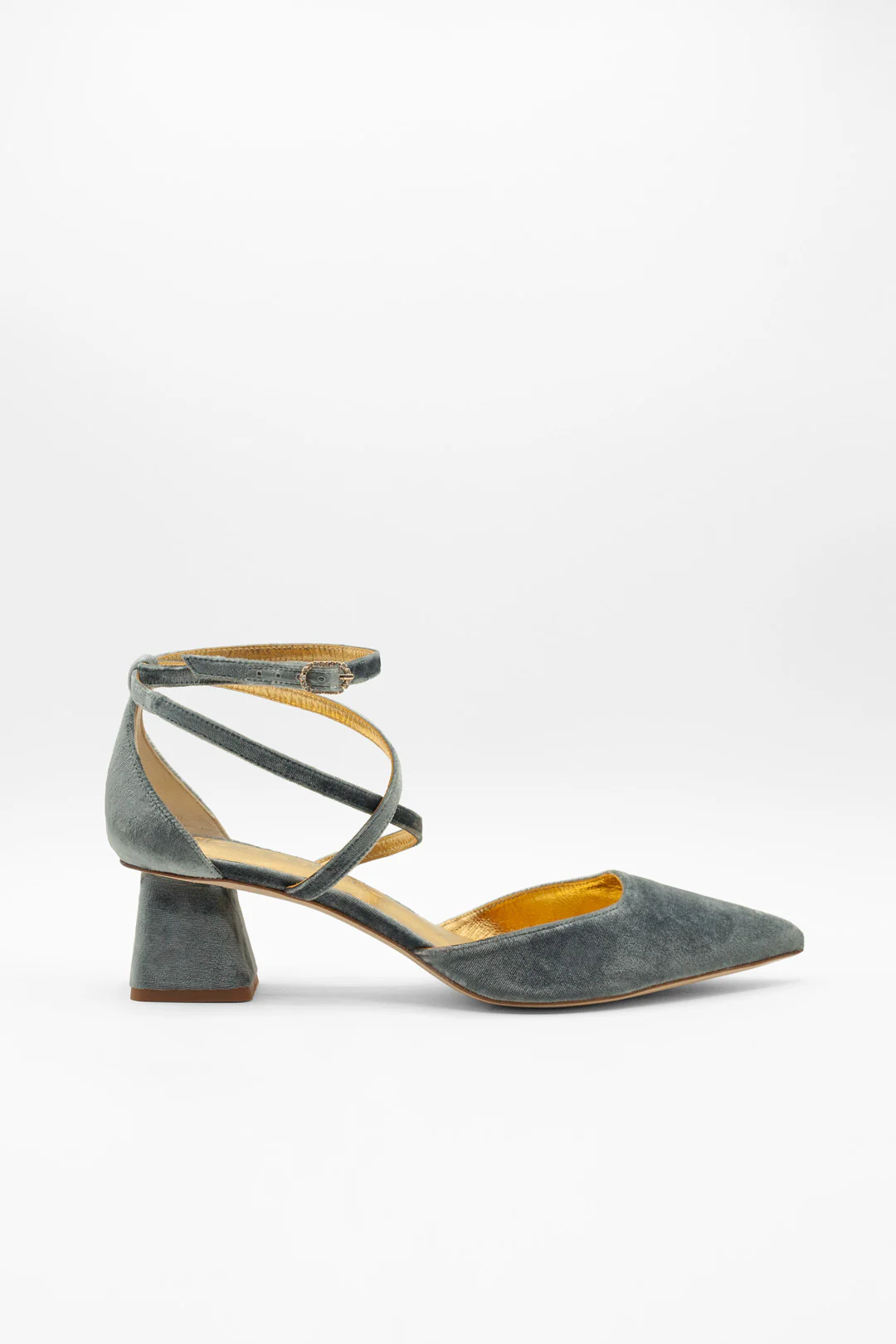 LO QUE MÁS NOS GUSTA: su tacón bloque de 5 cm, es una opción cómoda y elegante, perfecta para novias que buscan un toque de color sofisticado con altura discreta.