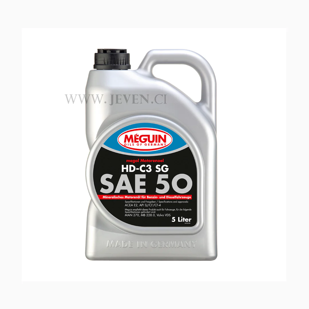 | Caractéristiques | HUILES MONOGRADES (Seulement Diesel, pour Véhicules, engins trés anciens) megol Huile moteur HD-C3 SG (Monograde) SAE 50 |