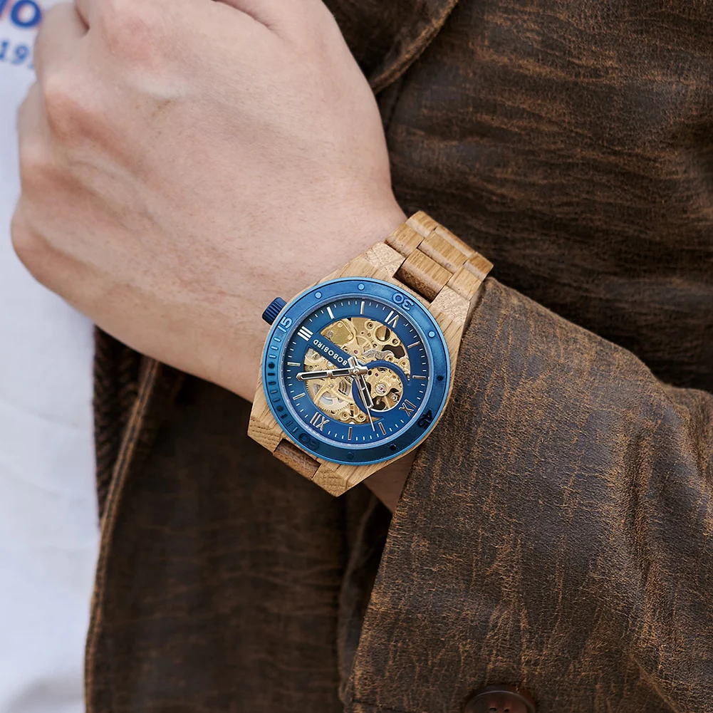 Mesurez le temps en élégance grâce à notre Montre en Bois Homme « Blue Mechanic » !