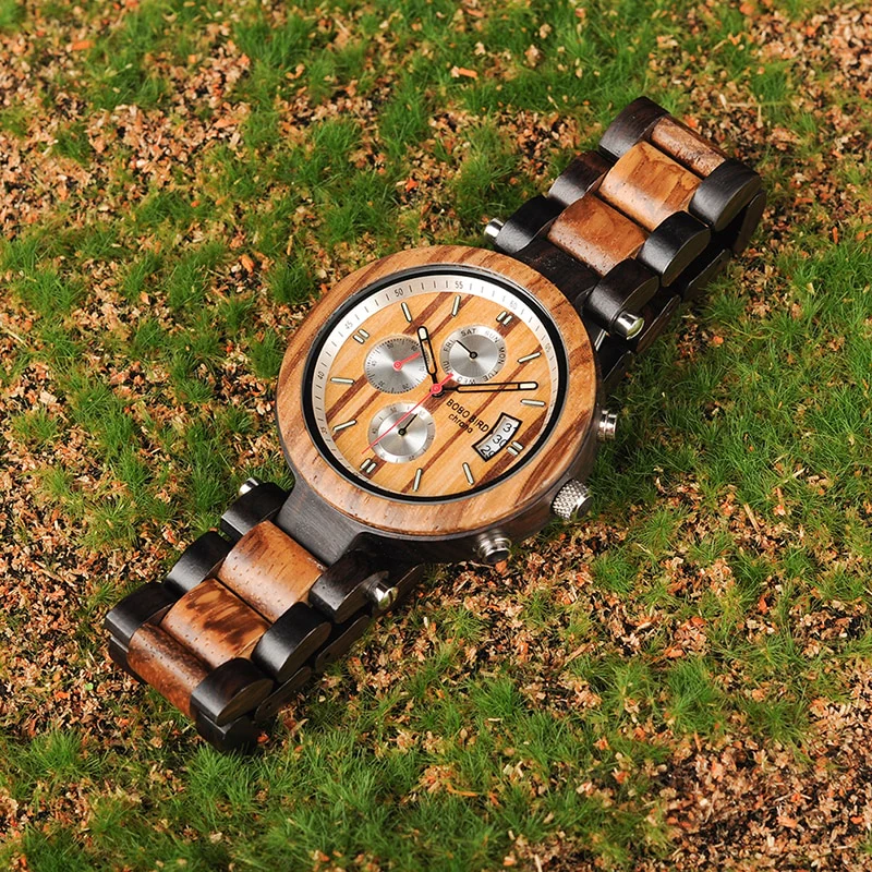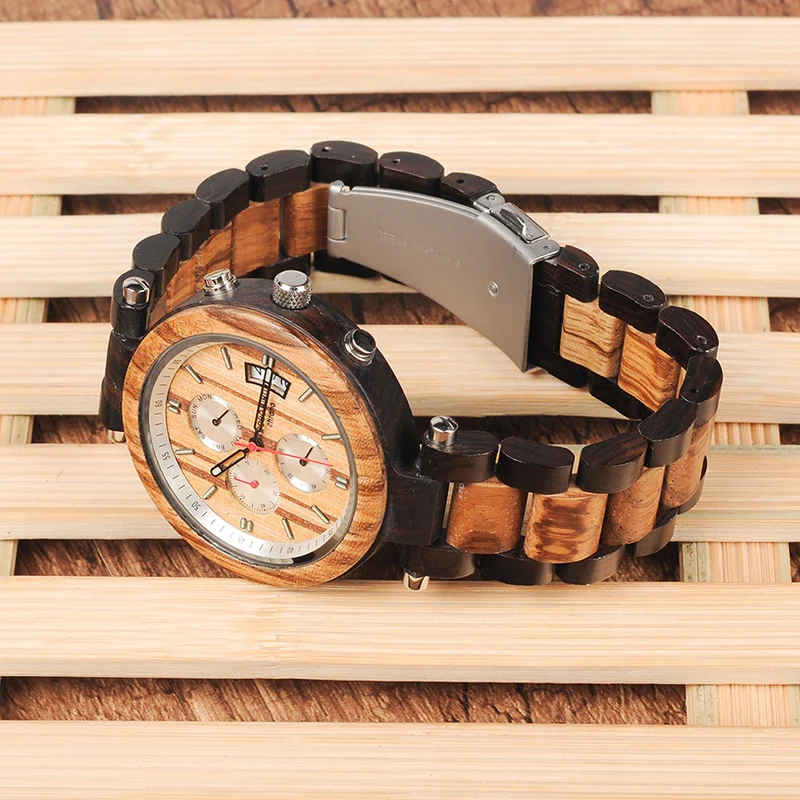 Cette montre chronographe intégrale avec ses deux teintes de bois est une pièce unique, magnifiquement conçue pour résister dans le temps.