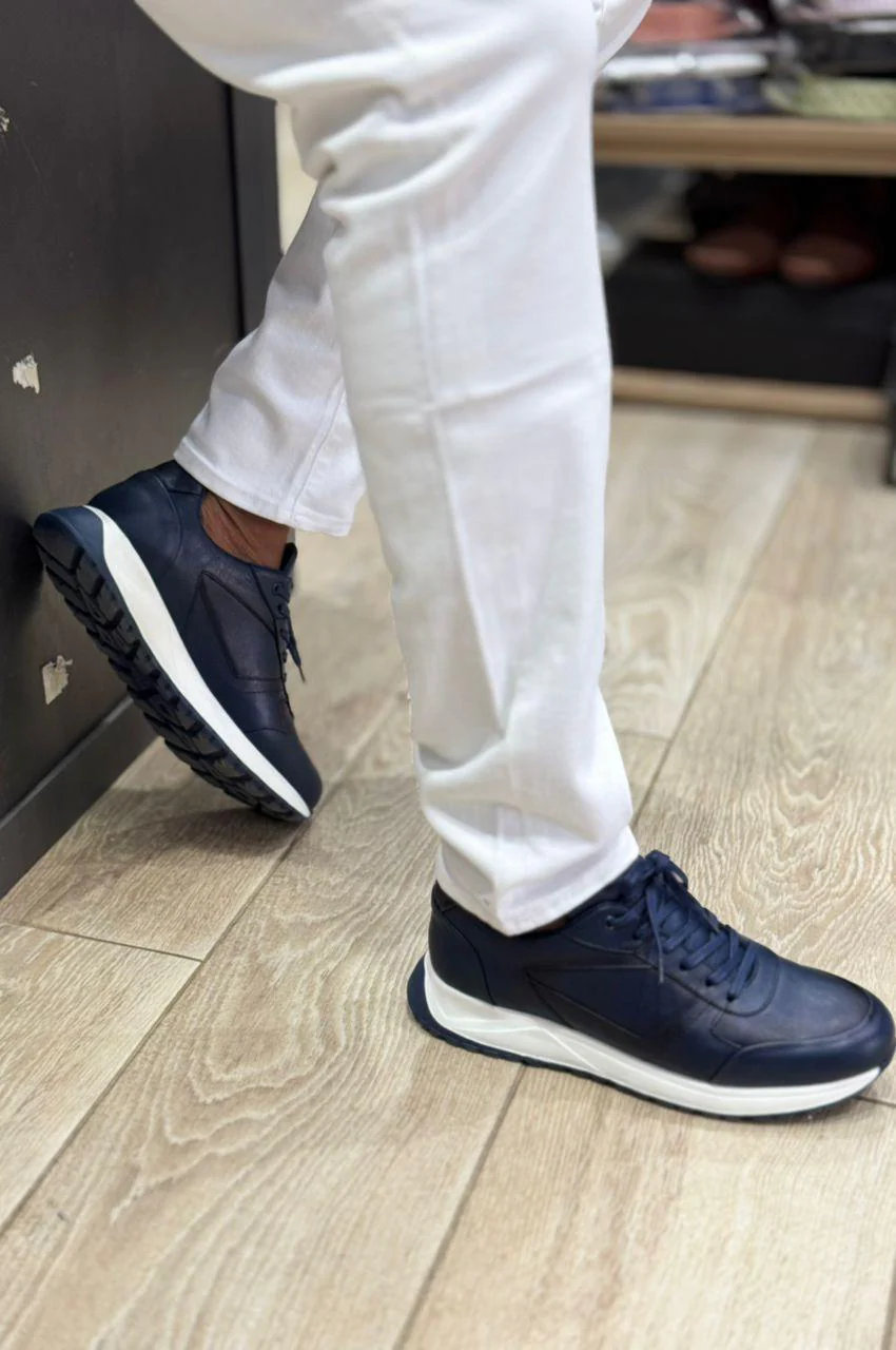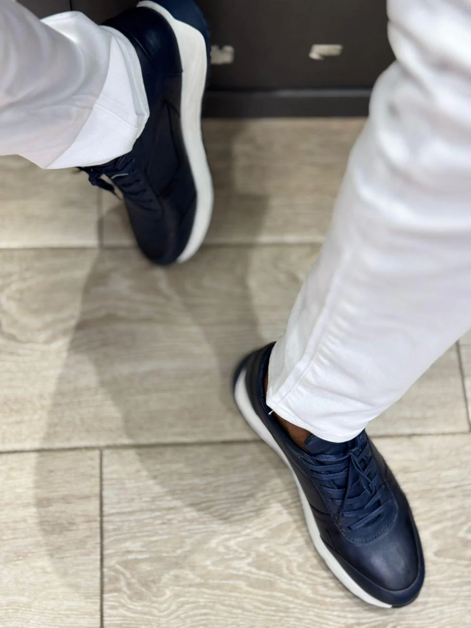 Sneakers en Cuir Bleu Nuit intemporelle casual modern