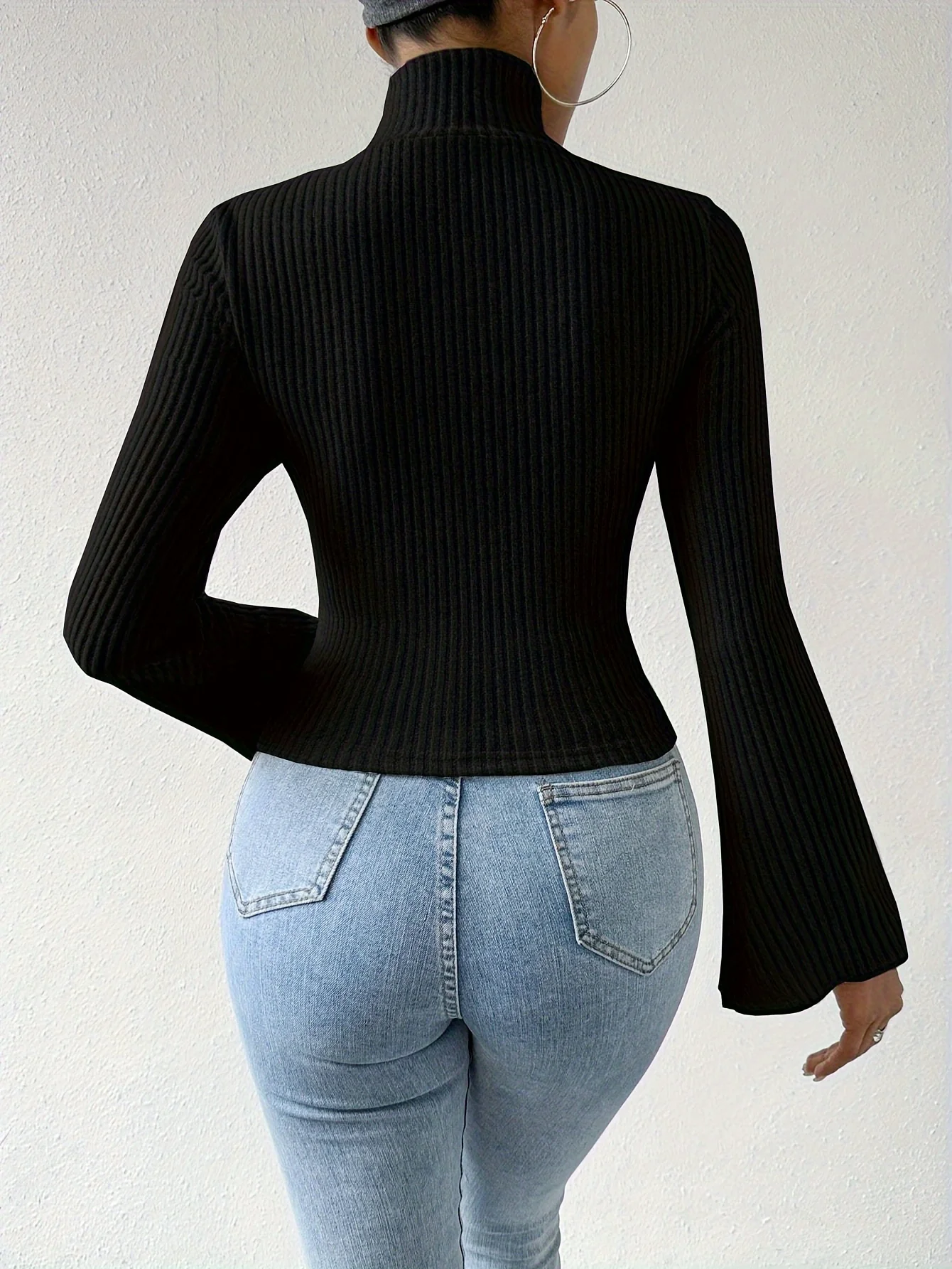 Chemisier dos nu à col montant, chemisier élégant à manches longues avec nœud au dos