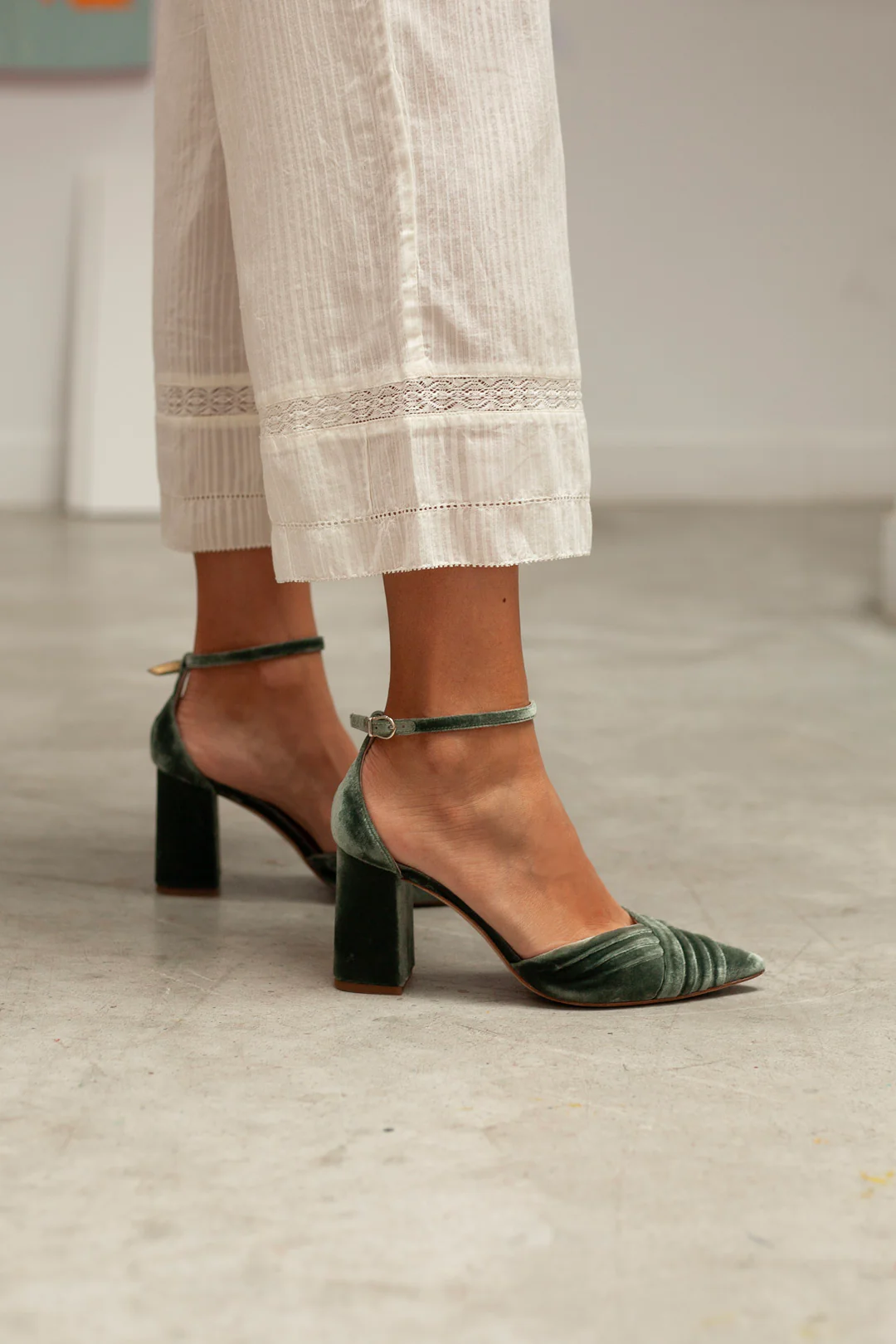 Zapato cerrado en punta en terciopelo color egeo, un azul profundo y elegante que aporta personalidad sin exceso. Con tacón bloque de 8 cm y pulsera al tobillo, ofrece una máxima sujeción y comodidad. Tacón bloque cómodo y estable. Altura de tacón: 8 cm. Material pala: terciopelo de seda. Color: zapato verde azulado Plantilla acolchada […]